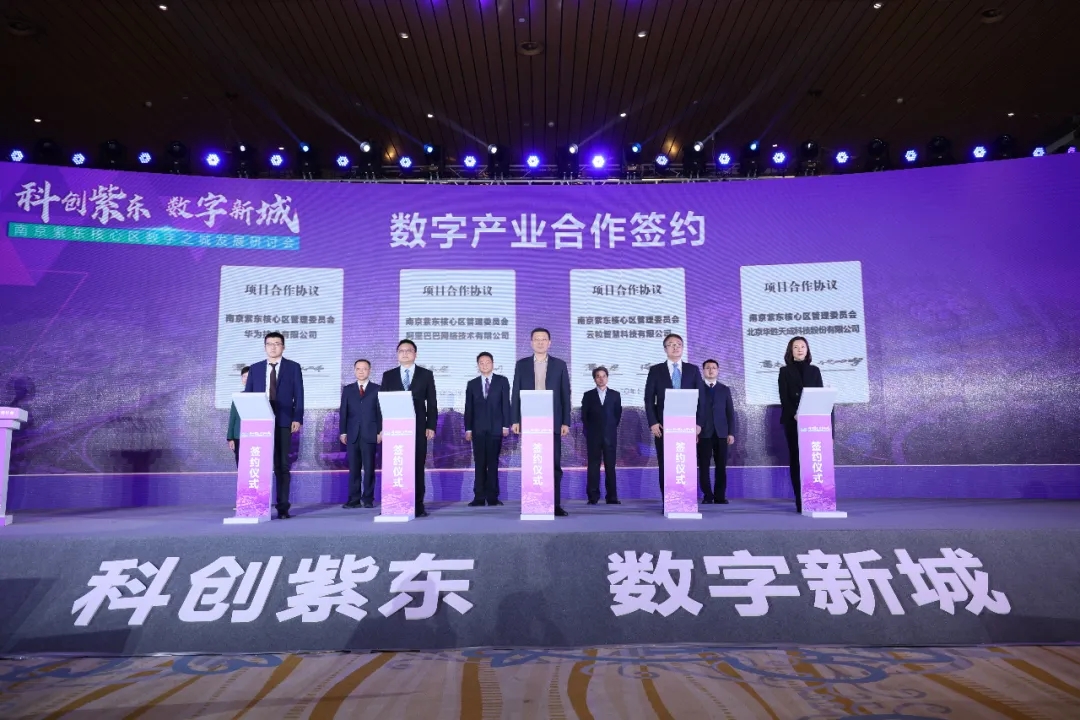 2020年11月26日,南京紫东核心区管委会主办了“数字之城”发展论坛,会上,华为、阿里巴巴、云粒智慧科技、华胜天成集团与紫东核心区管委会签订了《数字产业合作协议》,旨在大力发展当地数字基建、数字产业、数字科创、数字应用,助力紫东核心区“数字城市核心区、数字治理示范区、数字经济样板区”的建设。
