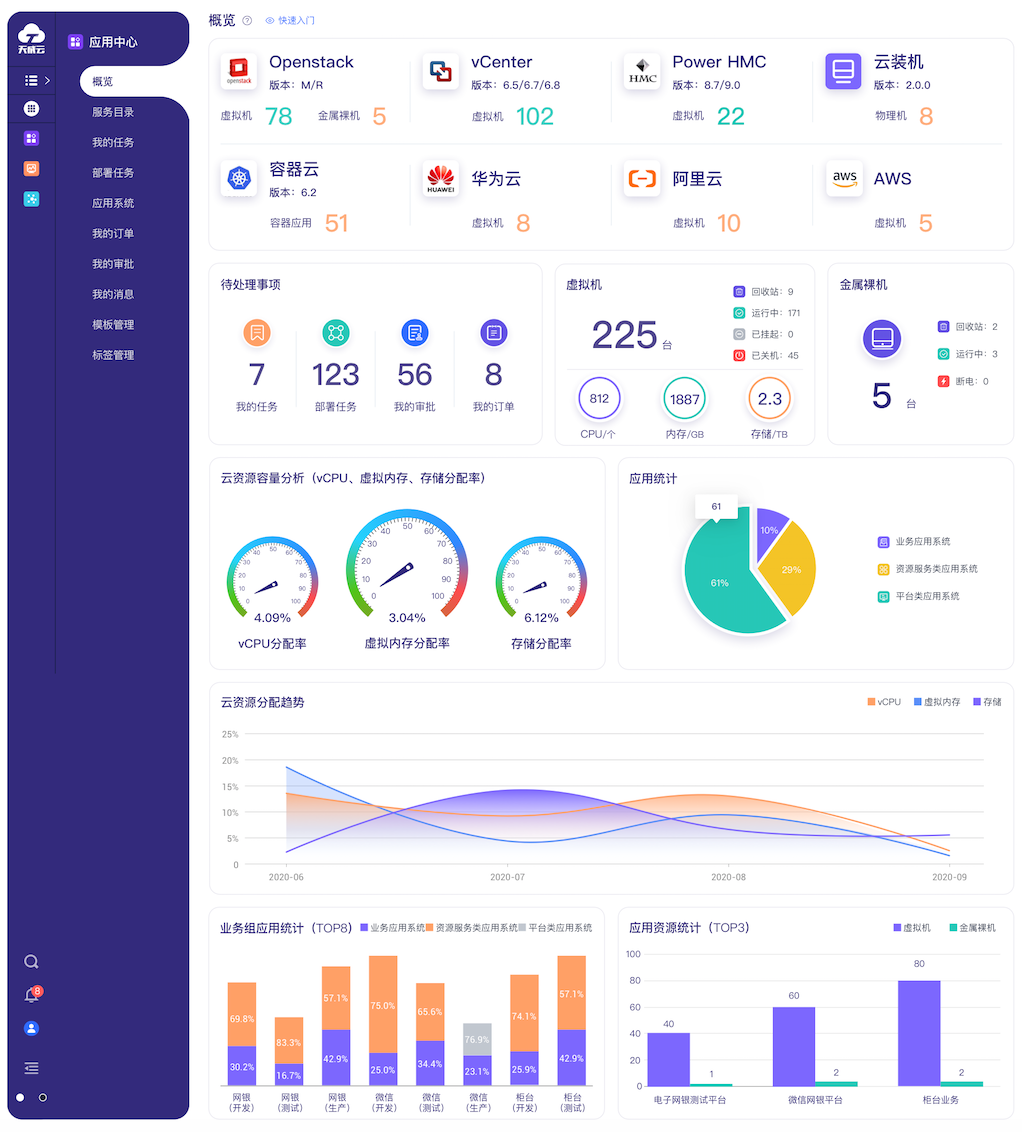 经过多年耕耘,华胜天成“天成云”的混合多云管理技术和服务已深入金融、电信运营商、政府、能源、制造等多个行业,并持续在数字化转型浪潮中扮演引领者的角色。在近期的某银行项目中,“天成云”为此银行构建了统一的多云管理平台,解决了多个异构的云环境资源分散管理上不统一、不规范的痛点,建立了标准的云资源管理制度,充分提升了客户的云资源规范化管理能力。同时通过将各类计算资源、存储资源的申请、审批、构建、部署工作封装成开箱即用的服务目录,为客户提供了自动化、流程化、图形化的云资源设计和部署能力,实现了云资源敏捷交付,大大降低了复杂异构云环境的交付难度;通过提供多维度、细粒度的云资源容量分析报告,从多个视角对云资源池的利用率和成本进行了准确的分析和评估,为客户的IT采购和扩容提供了更为准确的科学依据,大大降低了IT采购成本。