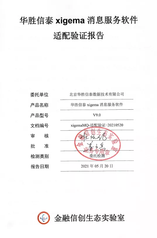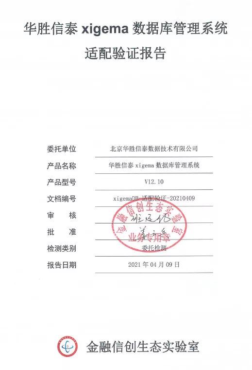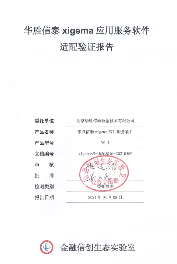 2021年4月,华胜信泰数据库产品xigemaDB V12.10和应用服务器产品xigemaAS V9.1适配金融关键业务贷后管理系统通过金融信息技术创新生态实验室的全面适配测试;5月,消息中间件产品xigemaMQ V9.0适配金融数据交换平台通过该实验室的全面适配测试,三款产品在功能、性能、稳定性、高可用性、业务系统的兼容性等方面均表现良好,分别取得了产品的适配验证报告,同时亦表明三者均具备支撑银行关键业务系统所需的各项能力。