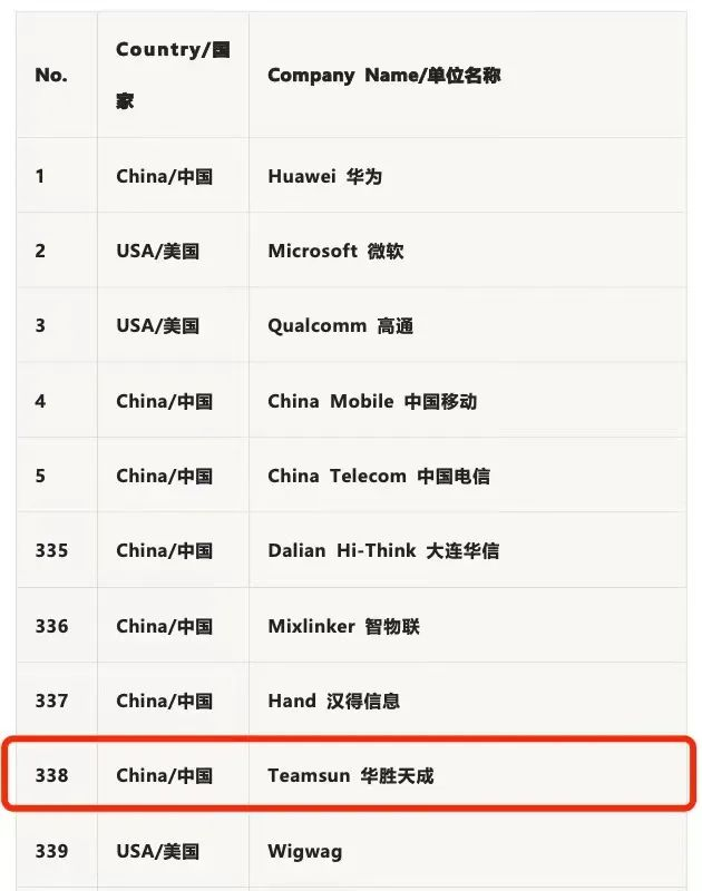 世界物联网大会(WIOTC)是具有影响力和权威性的创新型非营利性的物联网国际组织(物联网国际公约组织),本届排行榜由来自10多个国家和地区的40多位专家、学者评选产生。华为五连冠获得榜首,微软、高通、中国移动、中国电信、英特尔、三星、中国电科、中国联通等企业跻身前列。