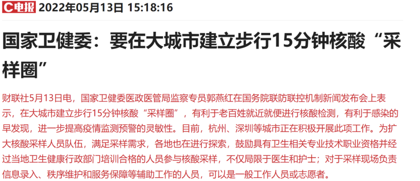 响应15分钟核酸“采样圈”政策号召,积极参与新一类基础设施建设