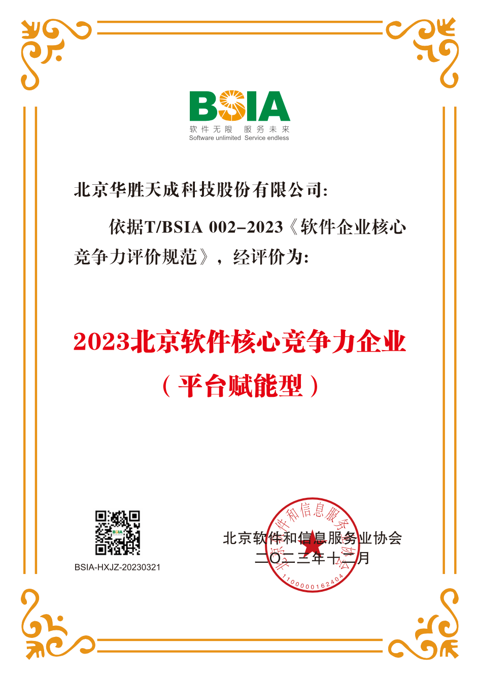 华胜天成荣获“2023北京软件和信息服务业综合实力百强企业”、“2023北京软件核心竞争力企业(平台赋能型)” 称号