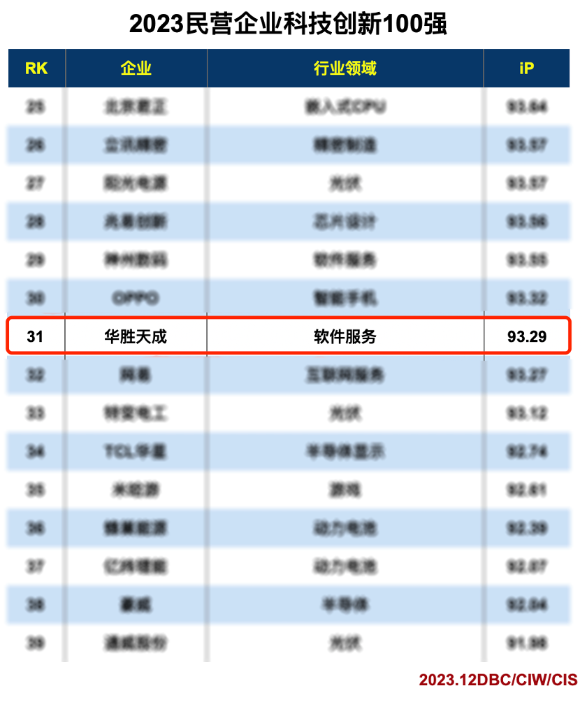 华胜天成入选“2023年度民营企业科技创新百强”榜单