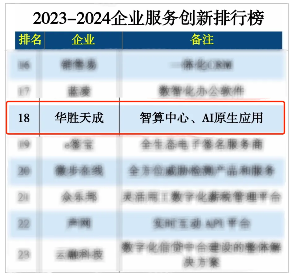 近日,权威机构德本咨询、互联网周刊与中国社会科学院信息化研究中心联合发布了“2023-2024企业服务创新榜单”,旨在表彰过去一年中通过数字化转型、用户体验优化、智能化服务等创新举措,能够更好地满足客户需求,实现自身可持续发展的企业服务提供商。华胜天成凭借在智算中心以及AI原生应用中的创新能力和卓越服务获得认可,荣登“2023-2024企业服务创新”榜单。