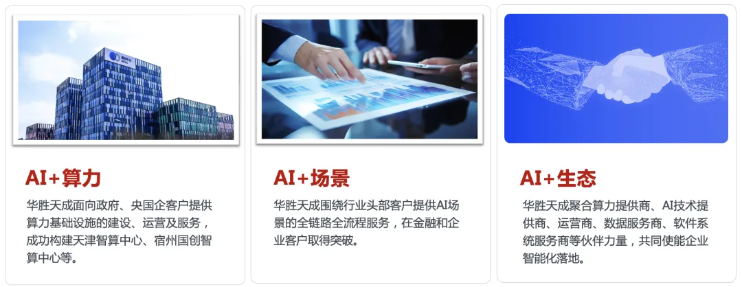 当前,在AI飞速变革的时代,华胜天成率先提出了“生成式AI重塑企业经营场景”的价值主张,并以“专注于企业级人工智能应用的AI服务提供商”为定位,以AI+算力、AI+场景和AI+生态为三大抓手,积极探索并实践着企业服务的创新之路,加速企业的AI变革,推动企业实现数智化转型。