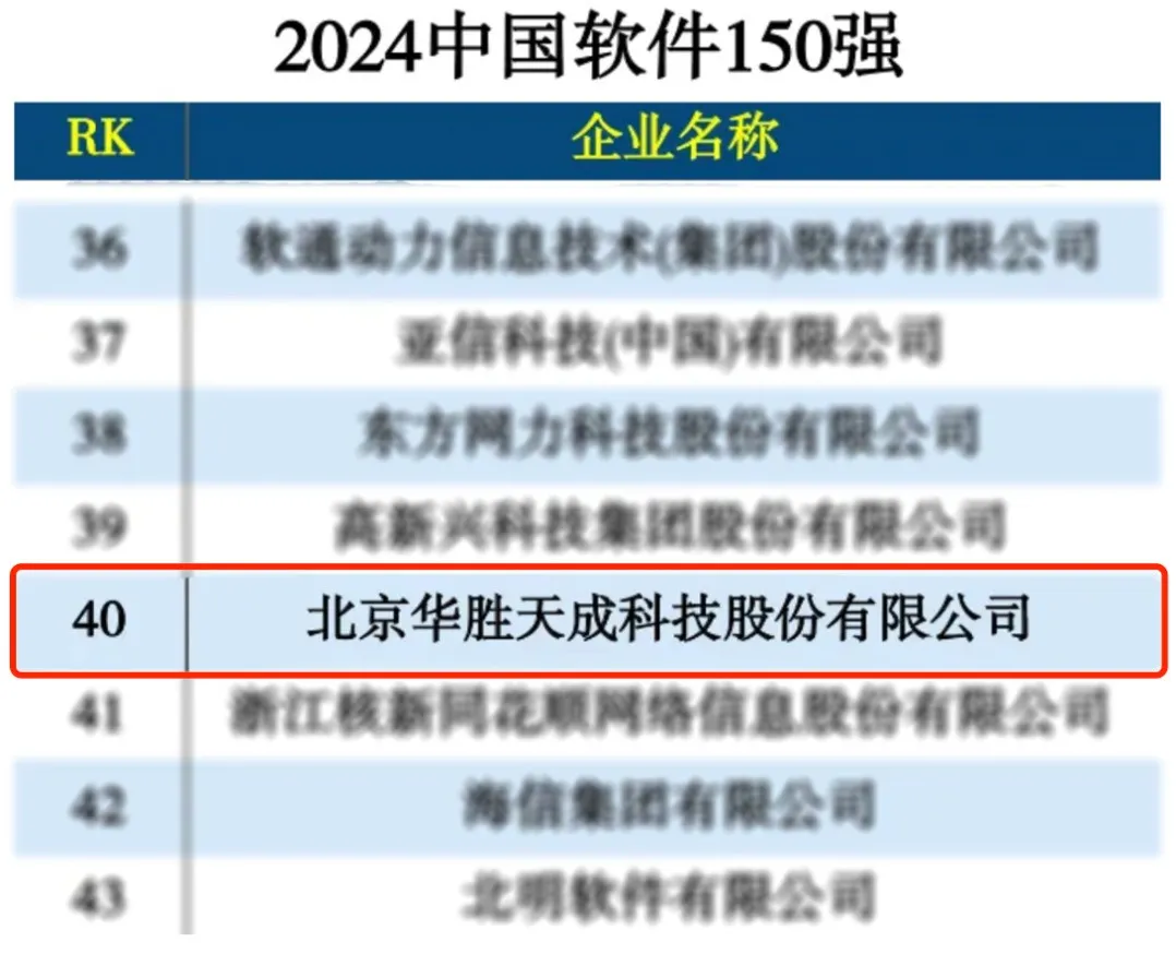 近日,中国科学院《互联网周刊》联合德本咨询、eNet研究院共同发布“2024中国软件150强”。华胜天成凭借在软件技术领域的卓越表现与创新能力,成功入榜,位列第40。这一荣誉标志着华胜天成在中国软件行业的领先地位再获权威认可,彰显了公司在数字化转型和软件服务领域的深厚积淀与强劲实力。