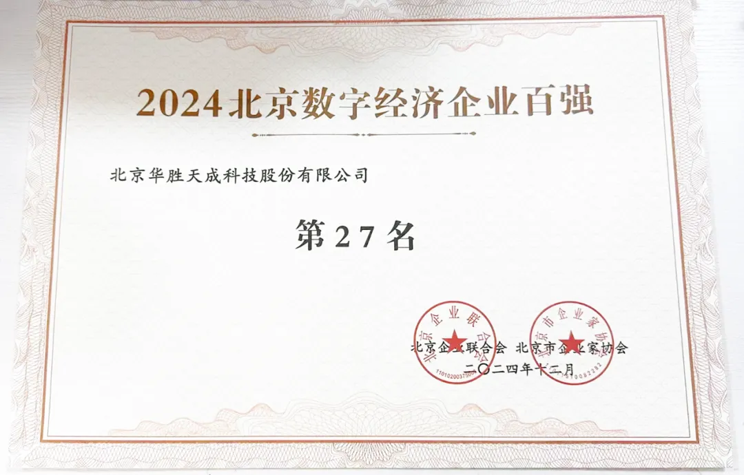 华胜天成入选“2024北京数字经济企业百强”榜单