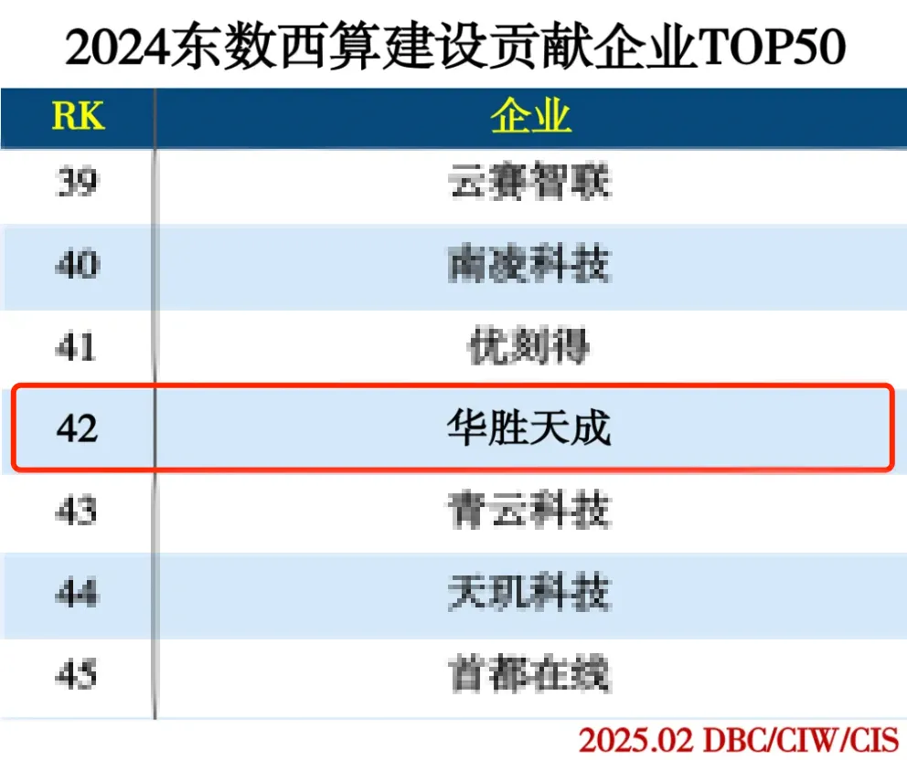 华胜天成荣登“2024东数西算建设贡献企业TOP50”榜单