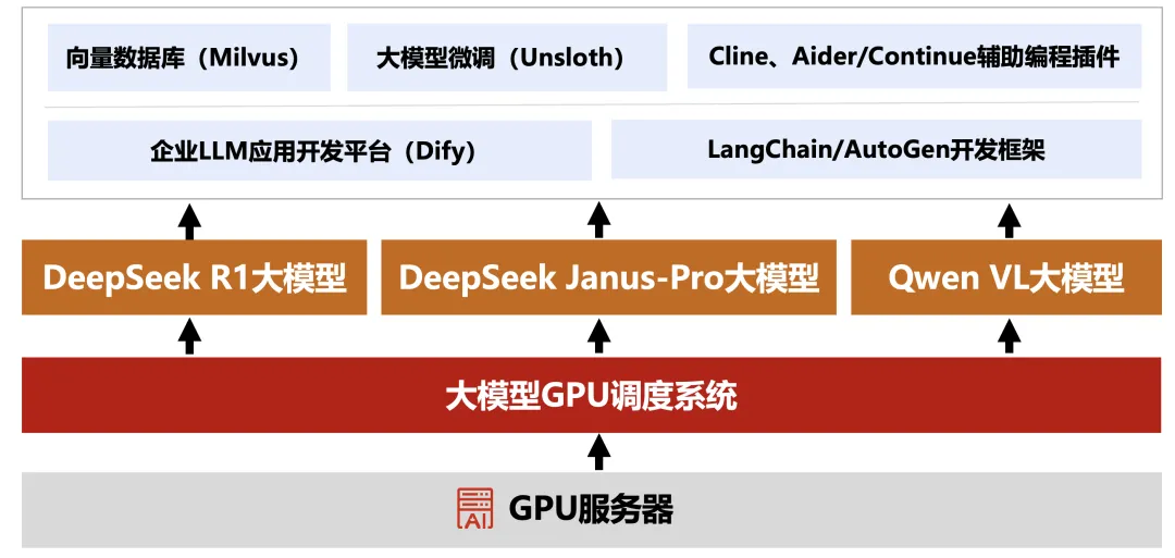 集成Dify低代码开发平台、LangChain/AutoGen开发框架、Unsloth模型微调系统、向量数据库、Cline、Aider/Continue辅助编程插件等核心工具,满足AGI教学全场景需求。